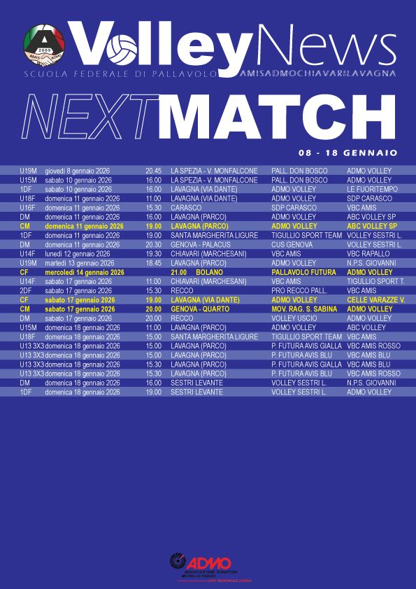🏐VOLLEYNews - NextMatch - 08/18 gennaio 2026🏐