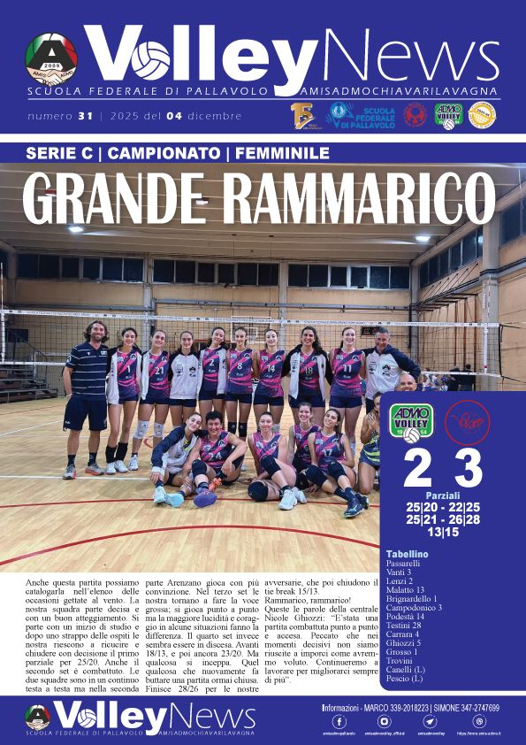 VOLLEYNEWS AMIS-ADMO n. 31/2025 del 04 dicembre 2025 - SettimanaleE' stato pubblicato il numero 31, anno 2025, del settimanale che raccoglie tutte le news, foto, risultati e classifiche delle nostre squadre. Questo progetto è reso possibile grazie anche al prezioso contributo dei dirigenti che collaboreranno alla raccolta del materiale e ci auguriamo possa dive...
